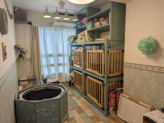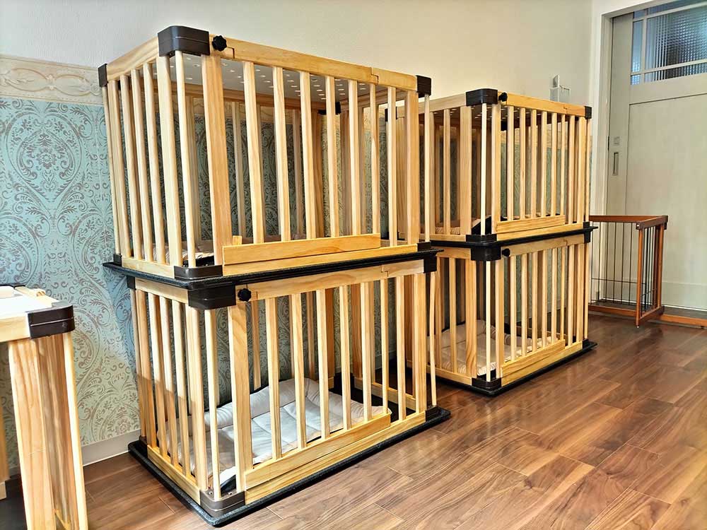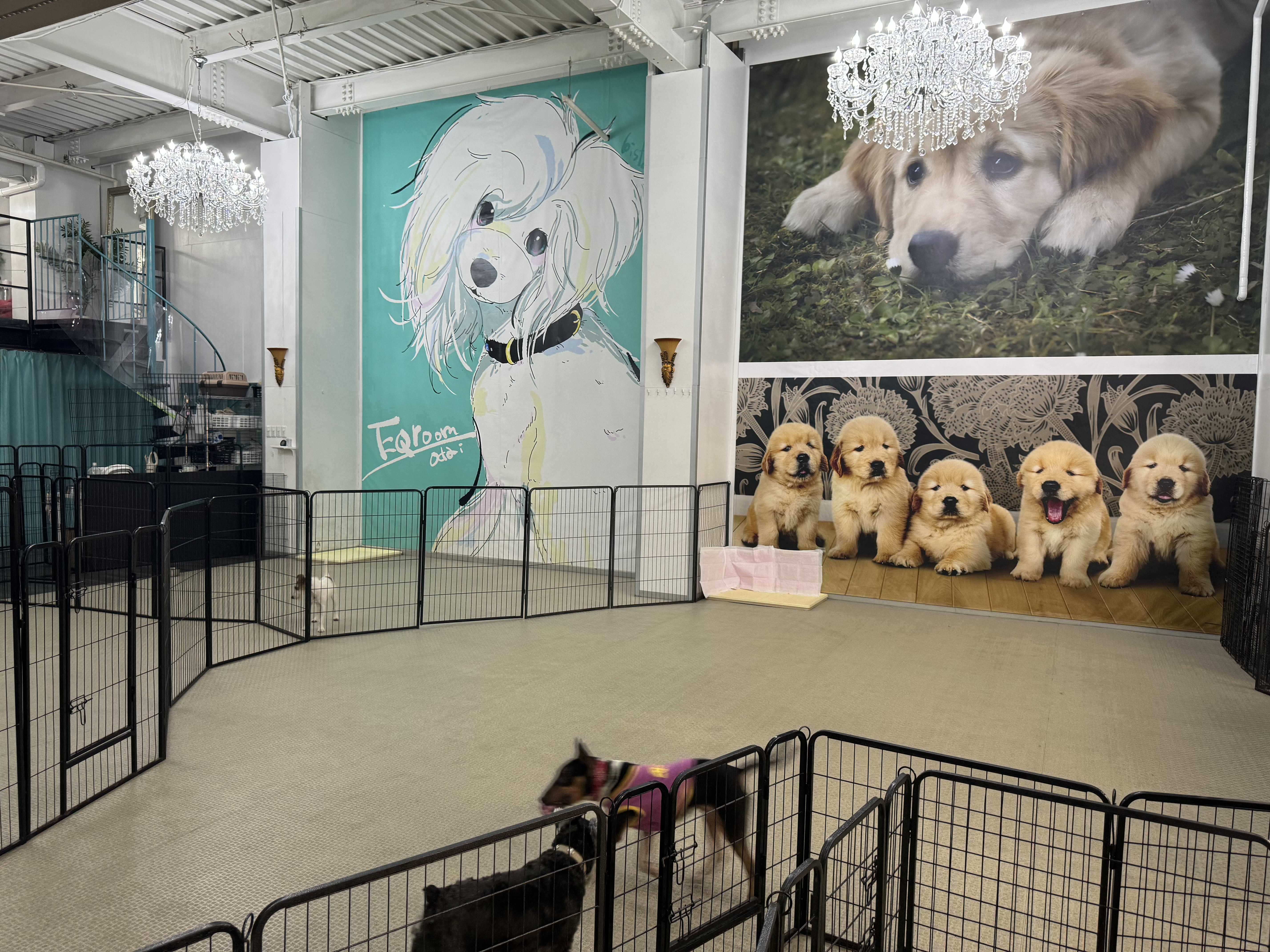 わんこのみかたでは、お泊り中ケージに入れっぱなしにせず延べ300㎡