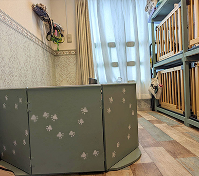 お預かり中は、延べ300m2の広い運動スペースでのびのび遊べます